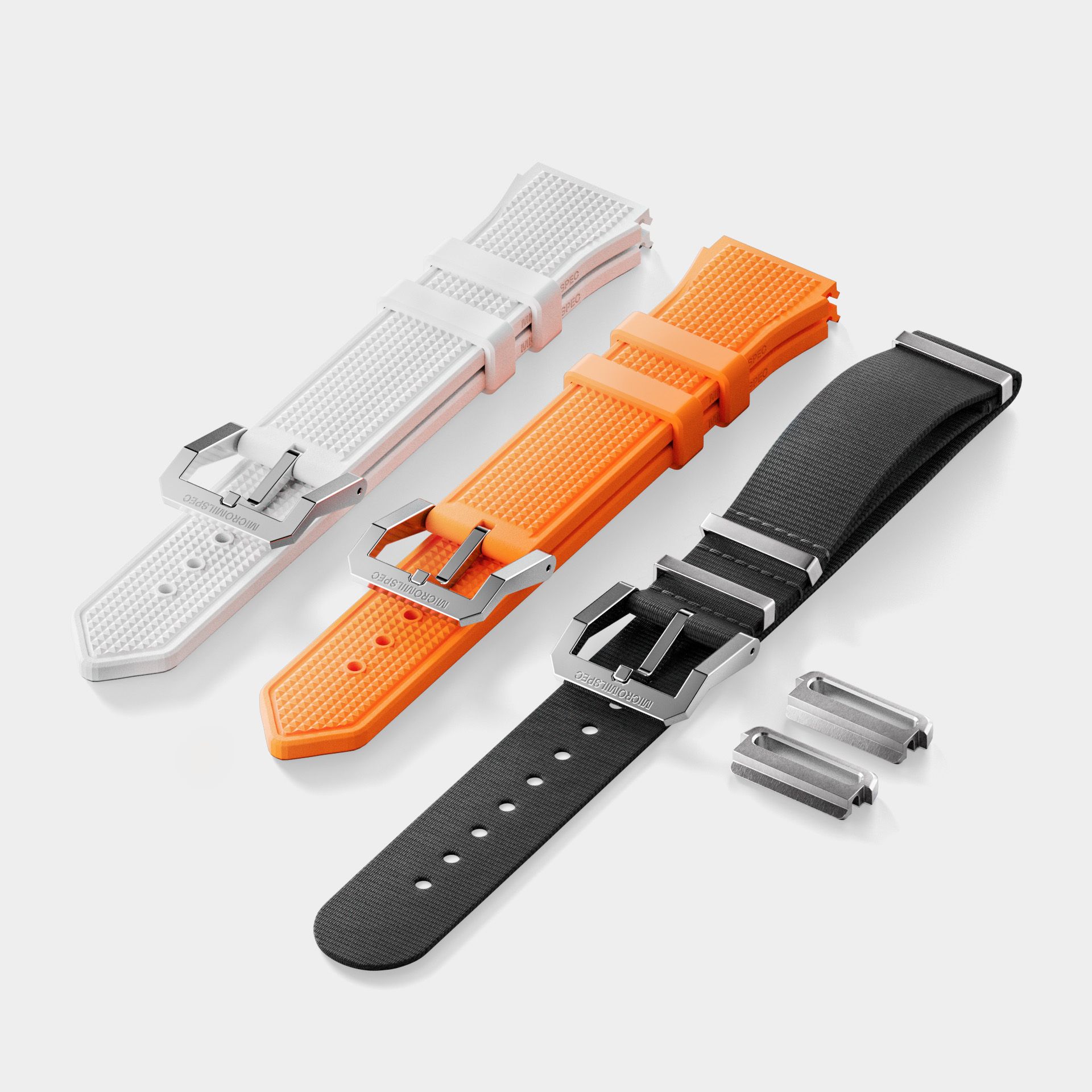 Get the rugged versatility rubber and look of NATO straps without any extra bulk. Seamlessly integrates with all MICROMILSPEC watches. One size fits all.