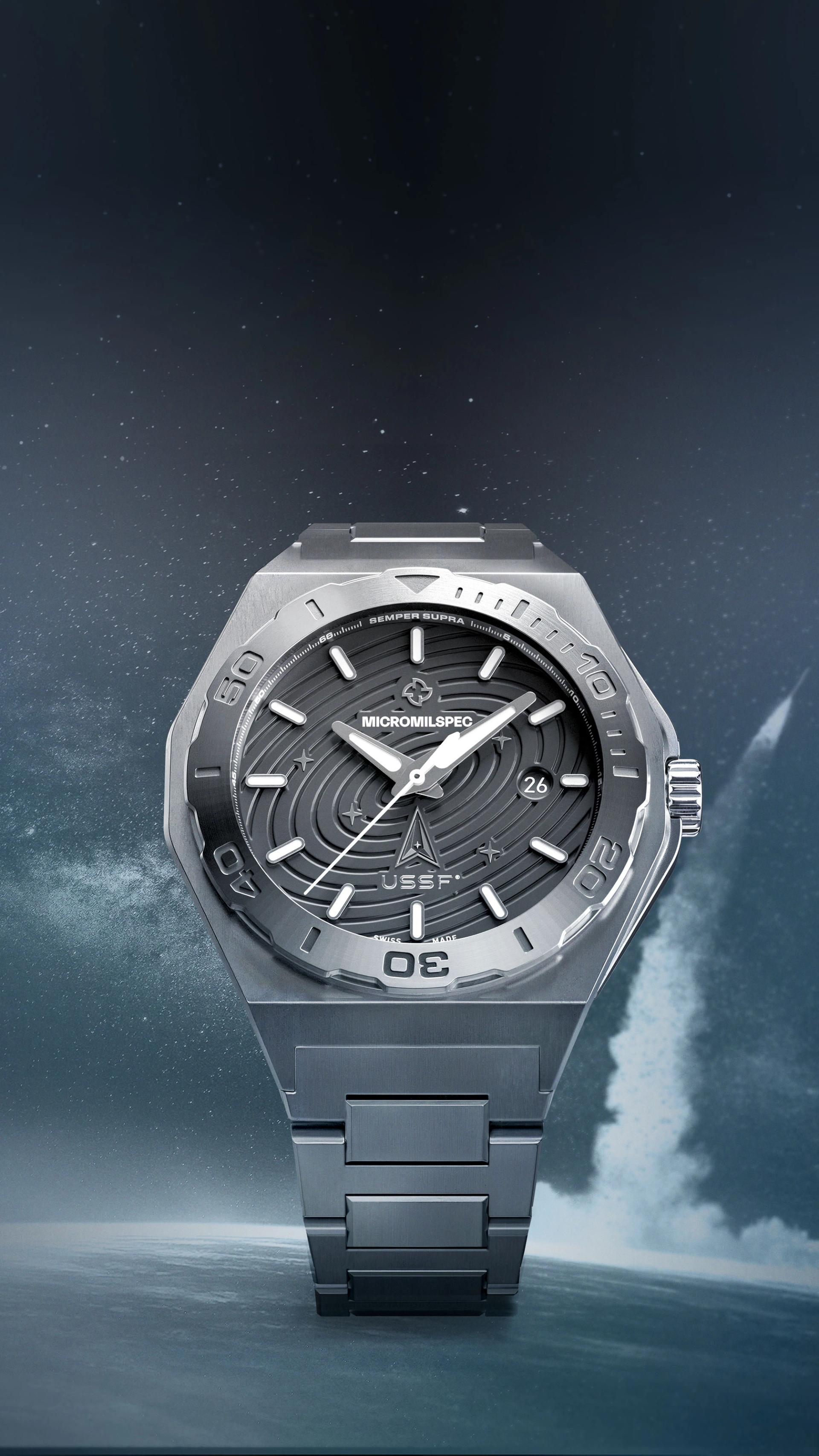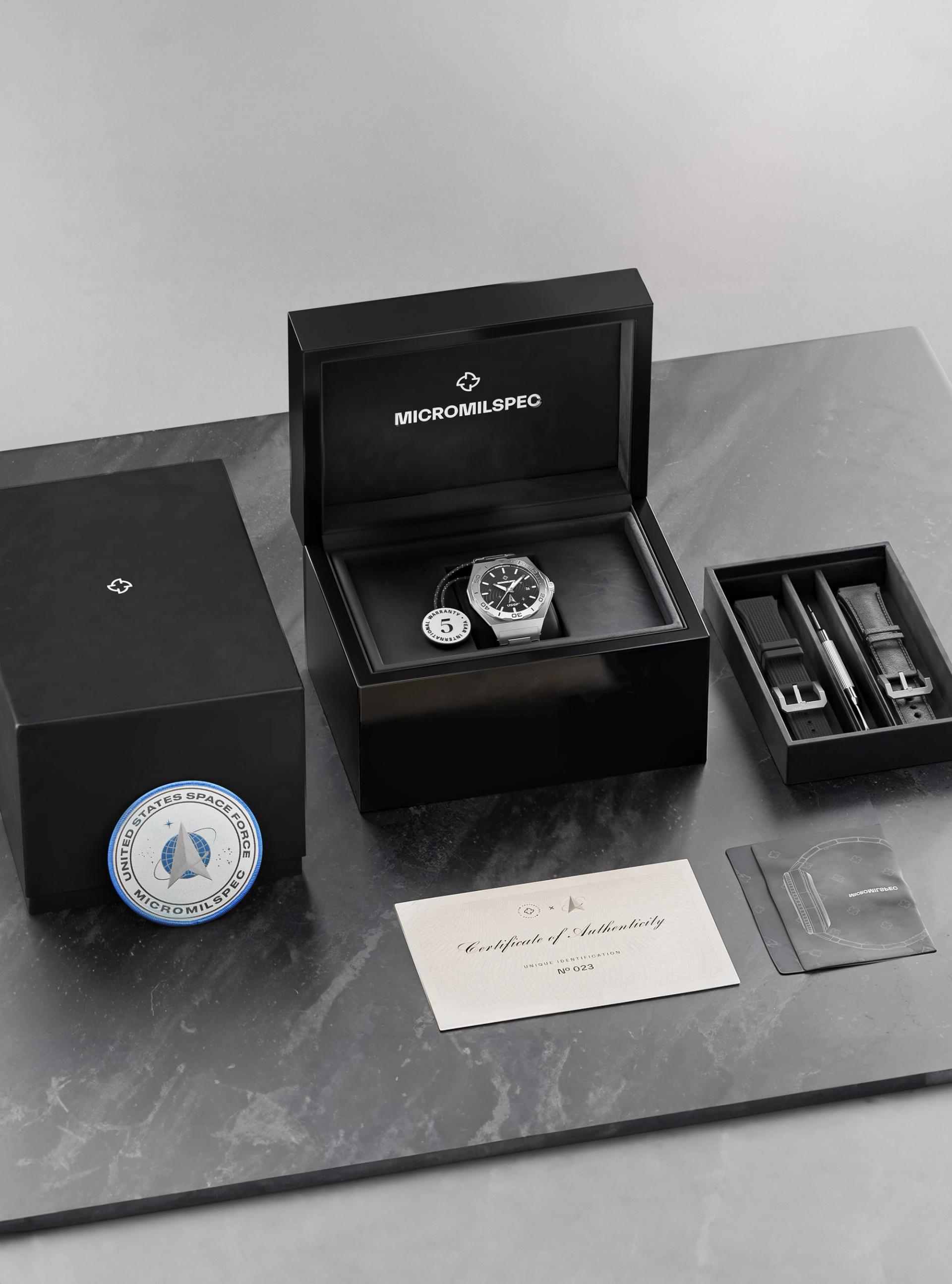 Limited to 25 pieces annually: Over a span of nearly two years, engaged in an intricate process of ingenuity and official authorization, MICROMILSPEC takes immense pride in presenting the U.S. Space Force Timepiece. A custom wristwatch designed in collaboration with esteemed members of the United States Space Force (USSF).