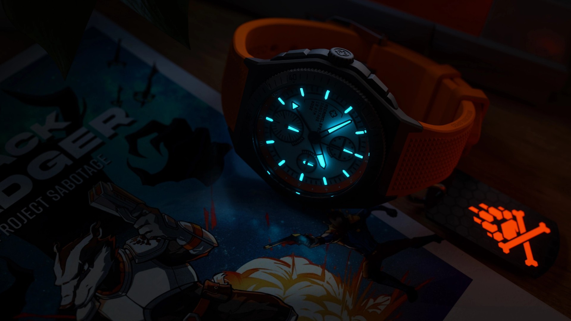 Oslo, May 22nd 2025 – MICROMILSPEC is proud to announce the launch of Project Sabotage, a new take on the award nominated MILGRAPH, sabotaged by none other than experimental artist Black Badger. This limited edition release combines tactical DNA with radioactive personality, highlighting the MILGRAPH as a true collector’s item. As with most of Black Badger’s work, Project Sabotage features standout lume usage on the piece. The indexes and hands are powered by high output X1-grade Super-LumiNova lume that glows an Ultramarine color in darkness and has been specially designed by Black Badger with RC Tritec in Switzerland to look as good in the dark as it does in the light.