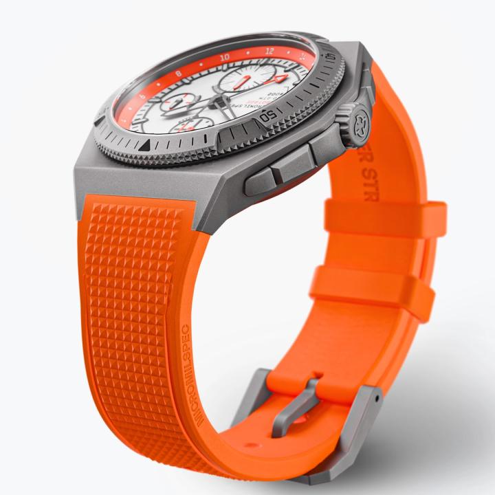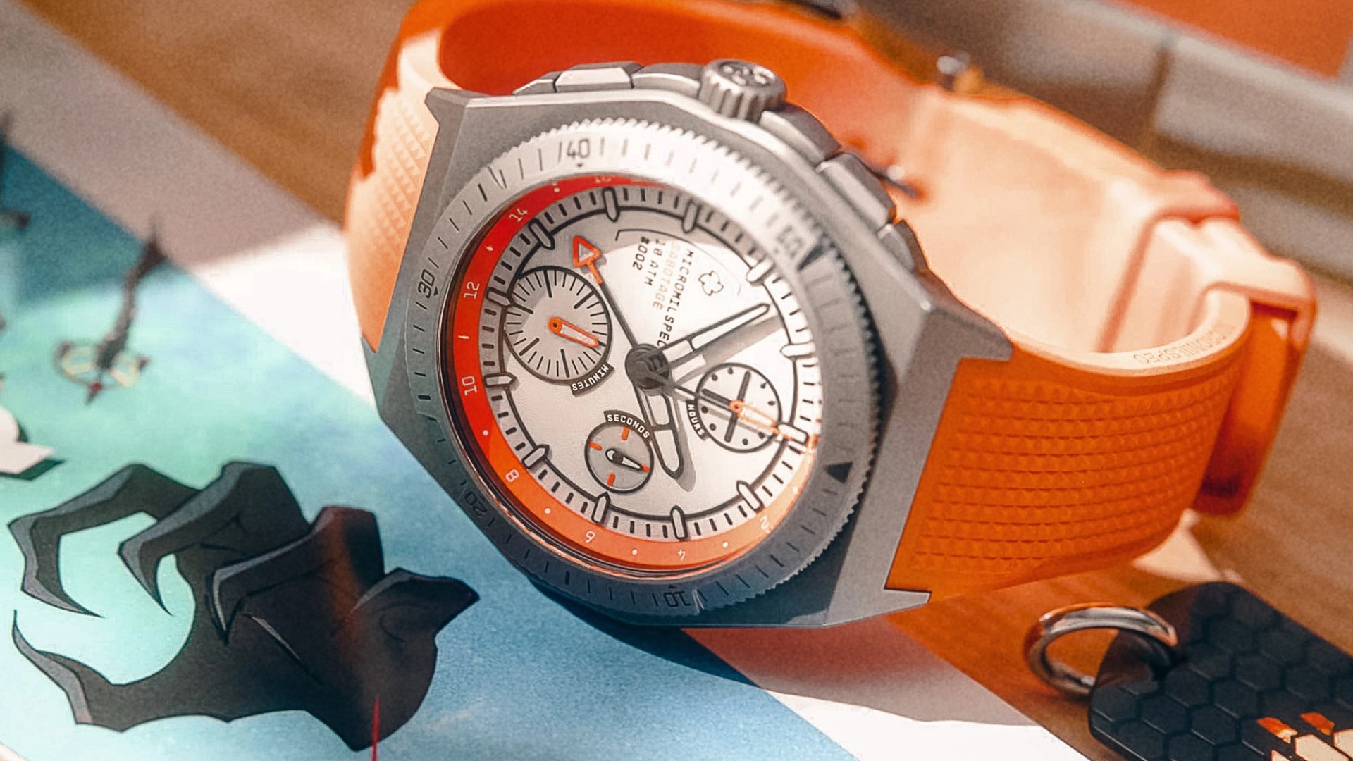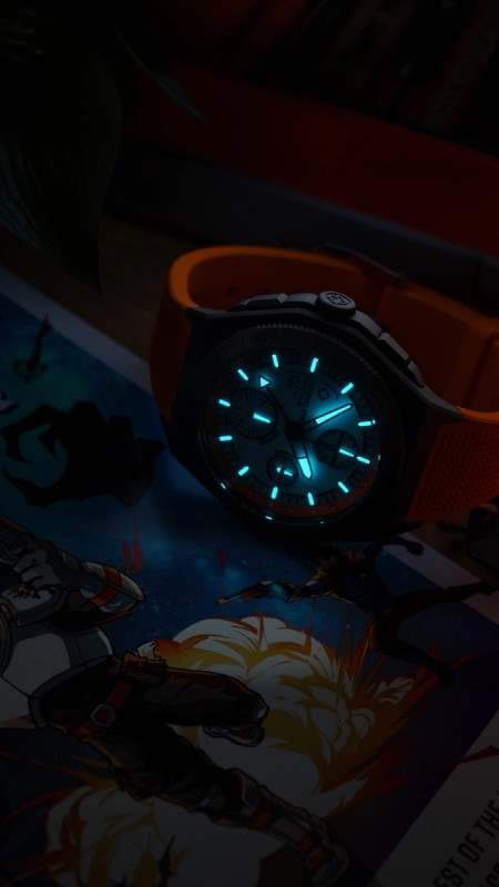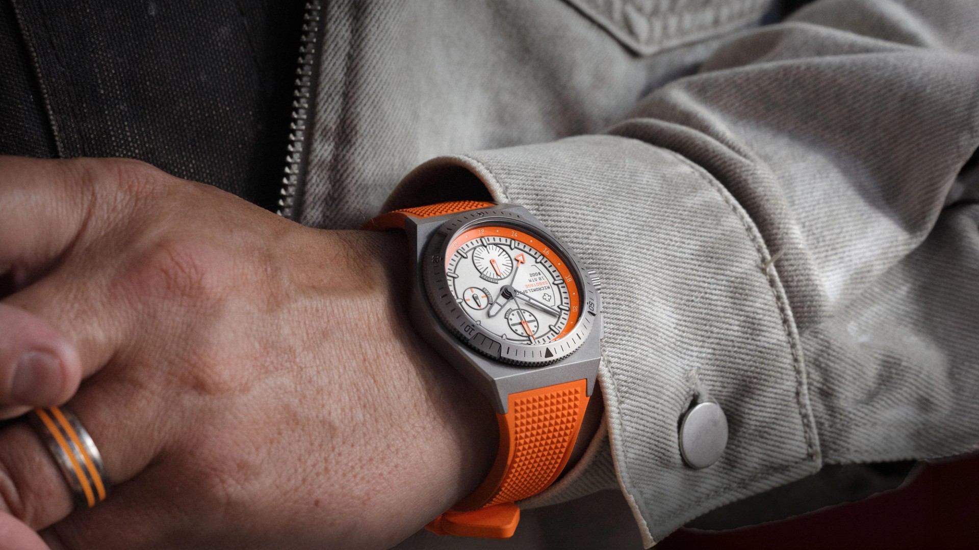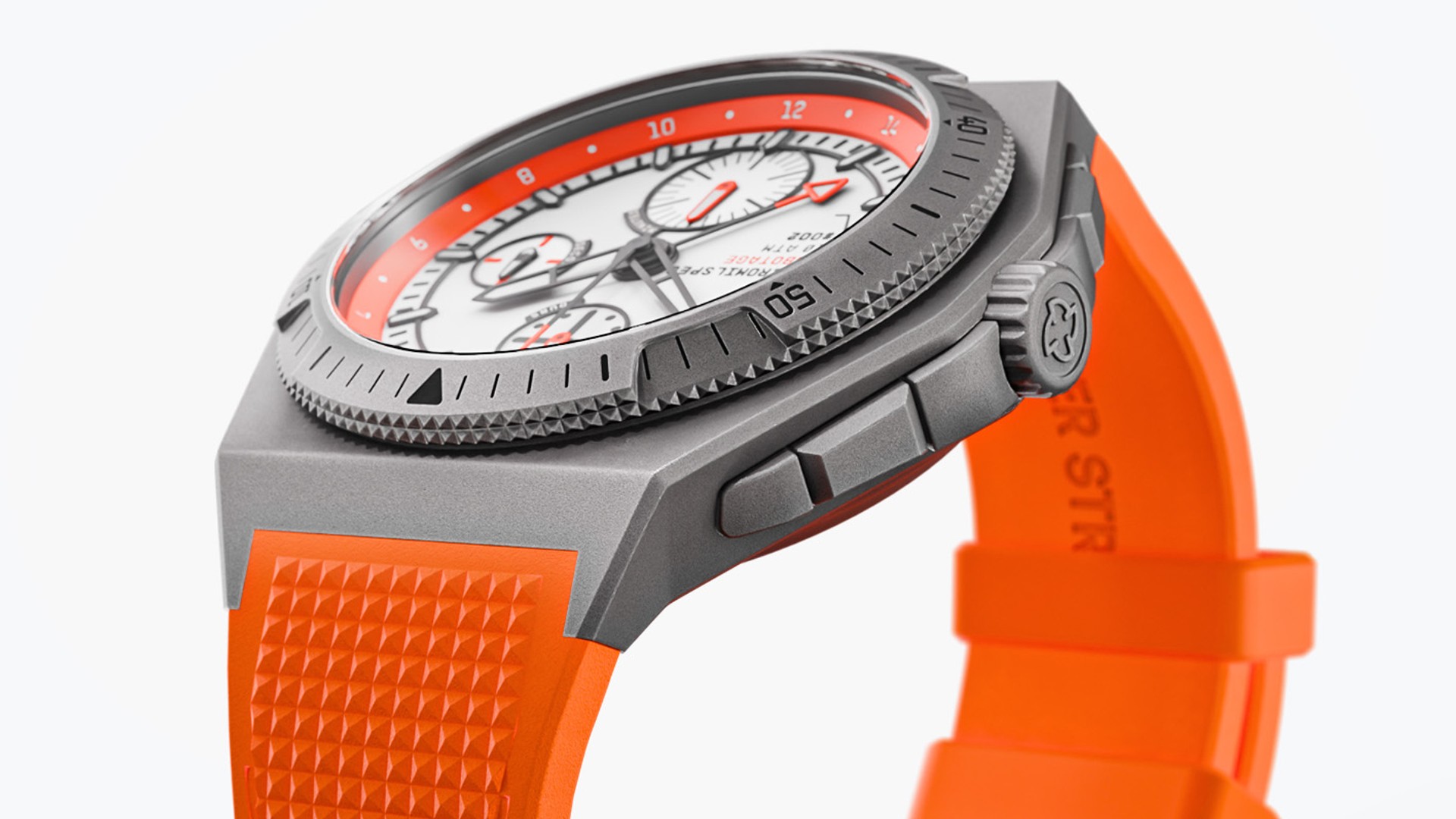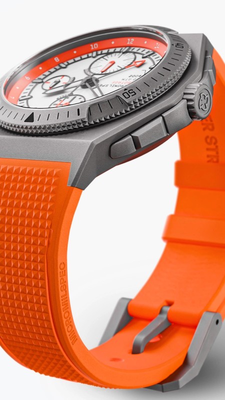 With the release comes a complete alternate anime universe, The Time Wars, where time itself is controlled by the tyrannical Chrono Syndicate, ruled by the Grand Psycho and his associate The Crown Guard. The MILGRAPH is the timepiece of choice for the galaxy’s most charming space pirate: Black Badger. Equipped with a matte white dial, Grade 5 titanium case, and a blast of high-vis orange, this watch looks like it was smuggled through a wormhole, and barely survived.