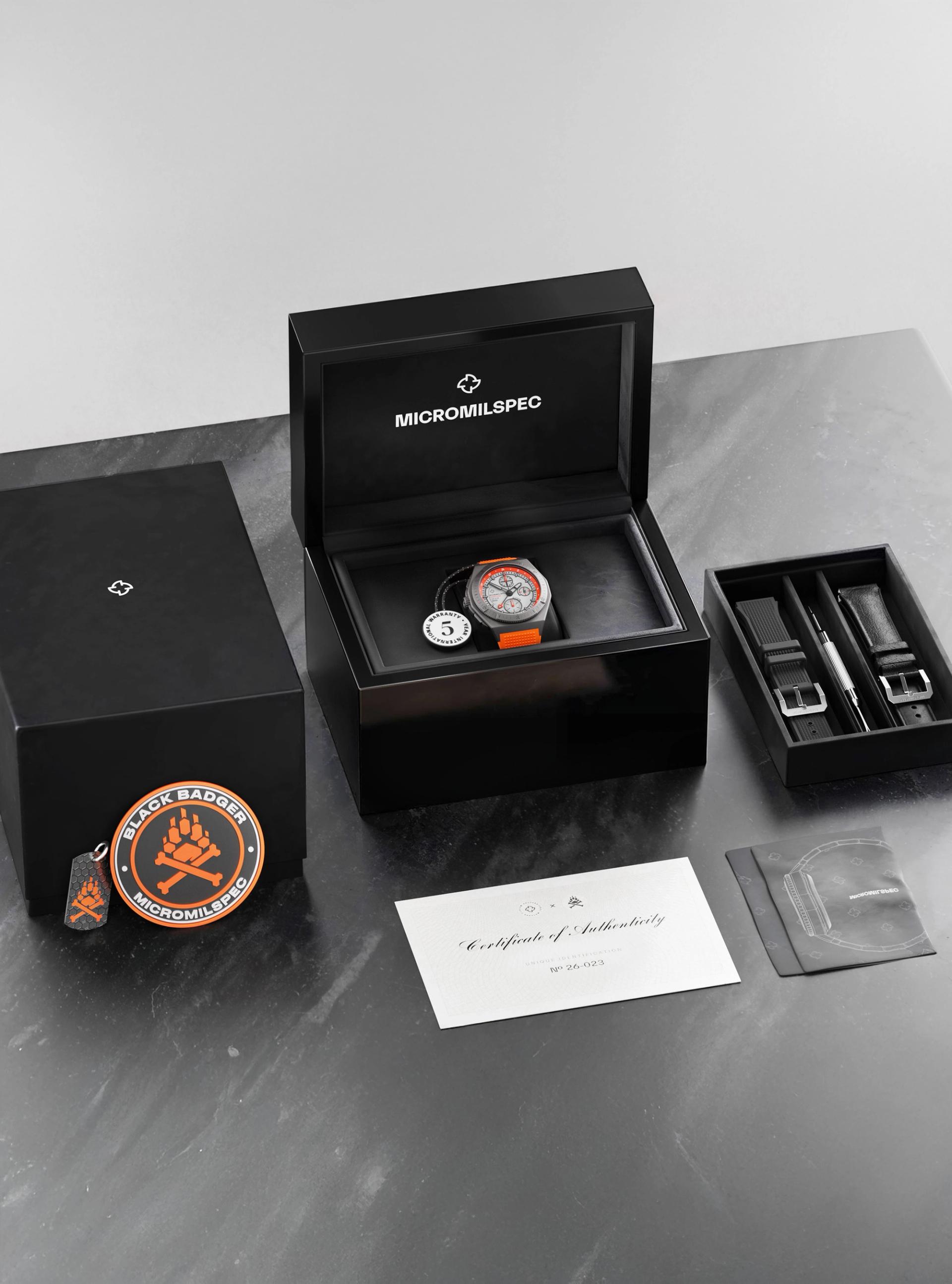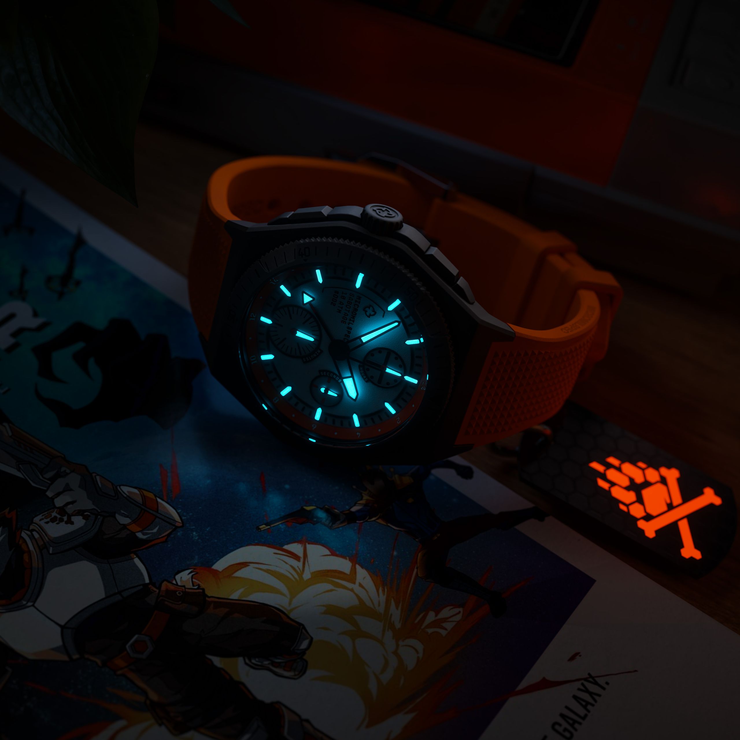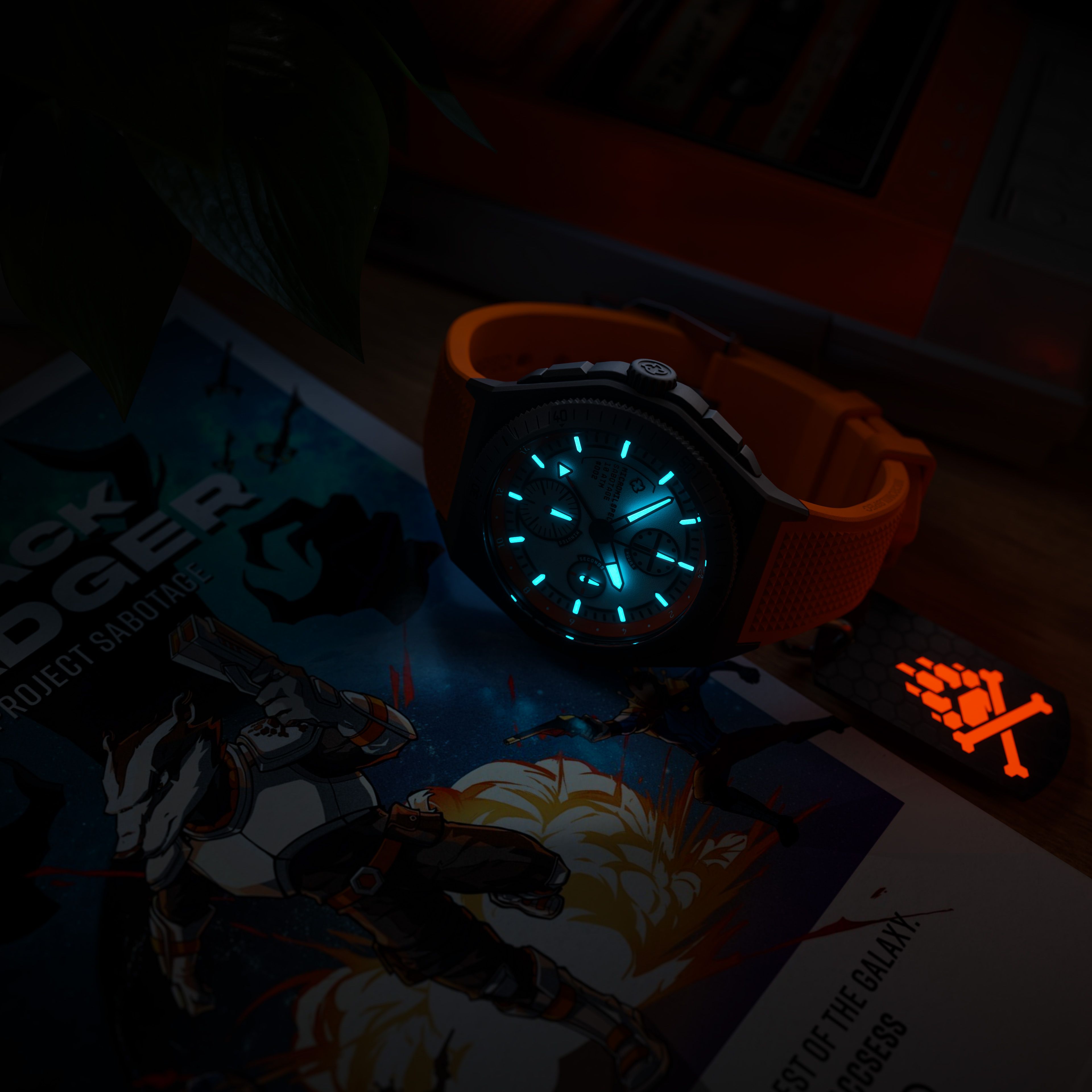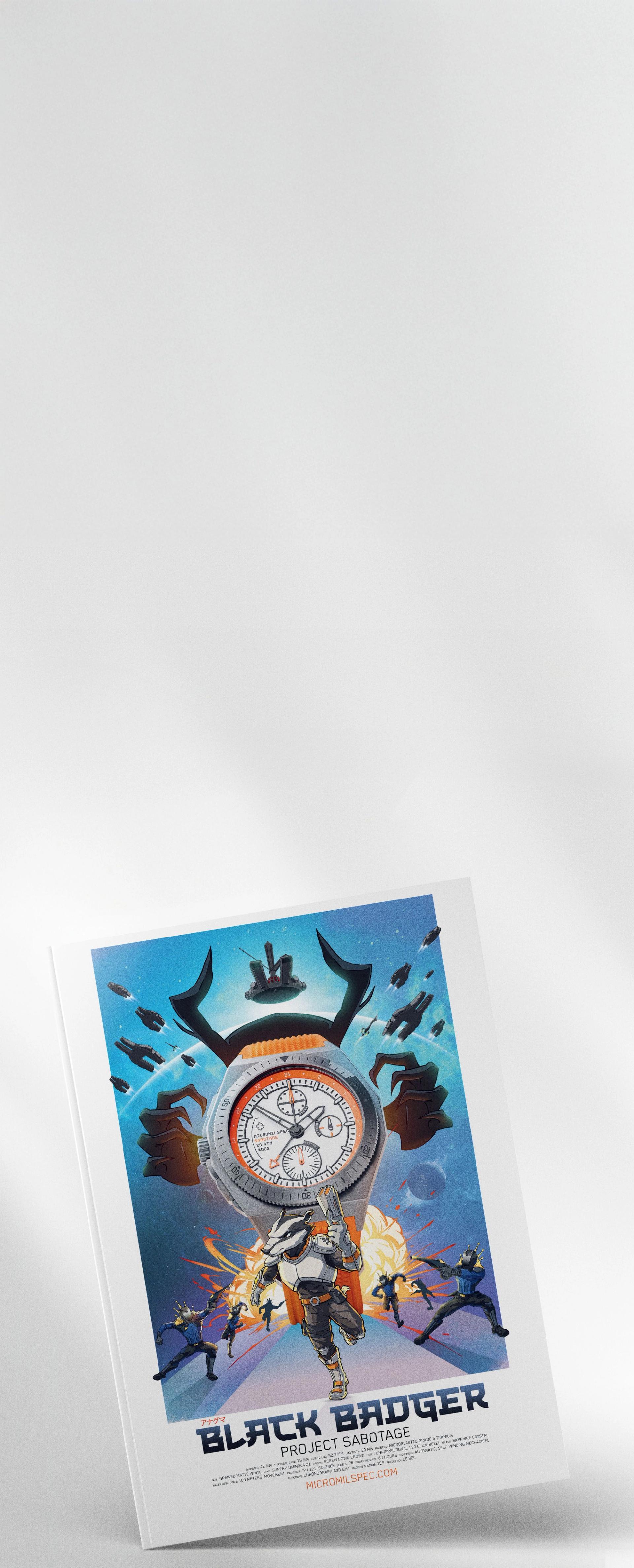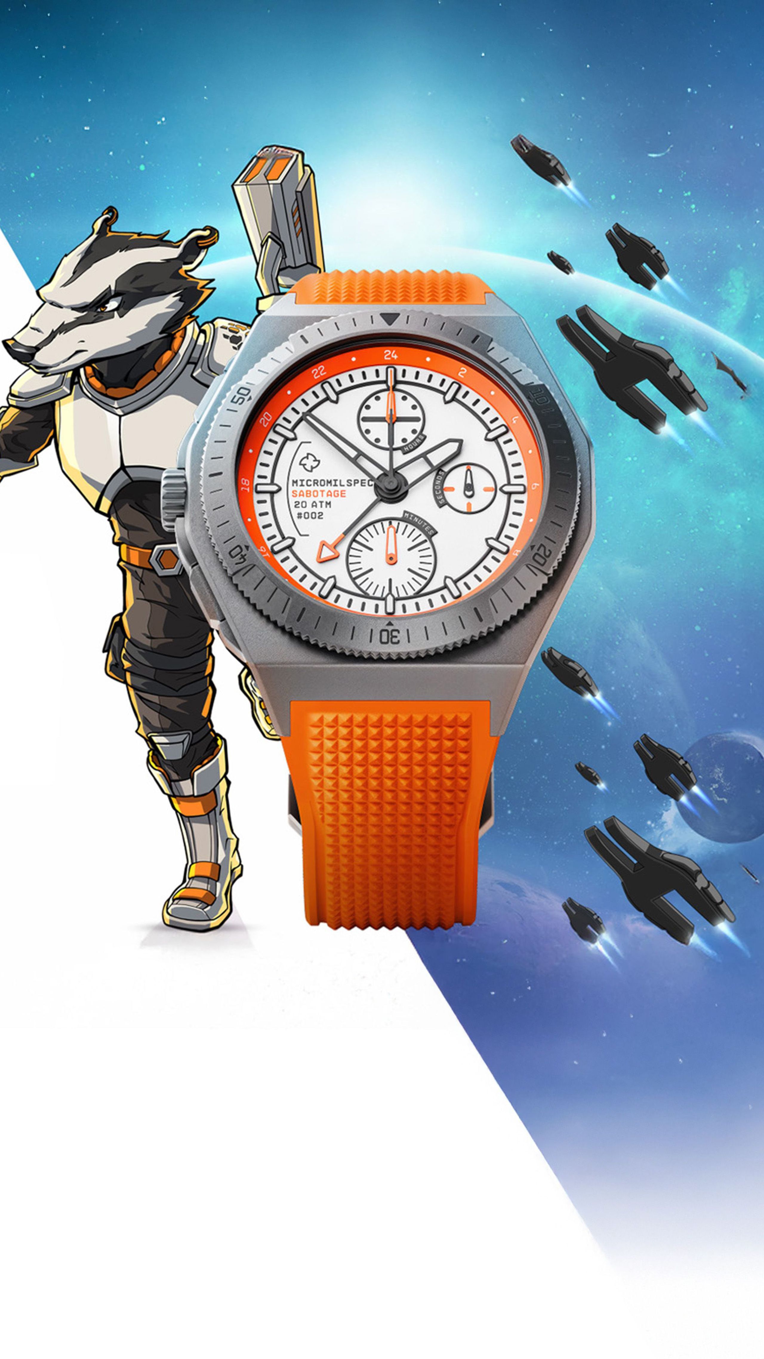Project Sabotage is a one-time-only release of 75 pieces, blending tactical function with the unmistakable signature of experimental artist Black Badger. In this limited edition chronograph, Black Badger rewires the MILGRAPH with glowing attitude and uncompromising edge.