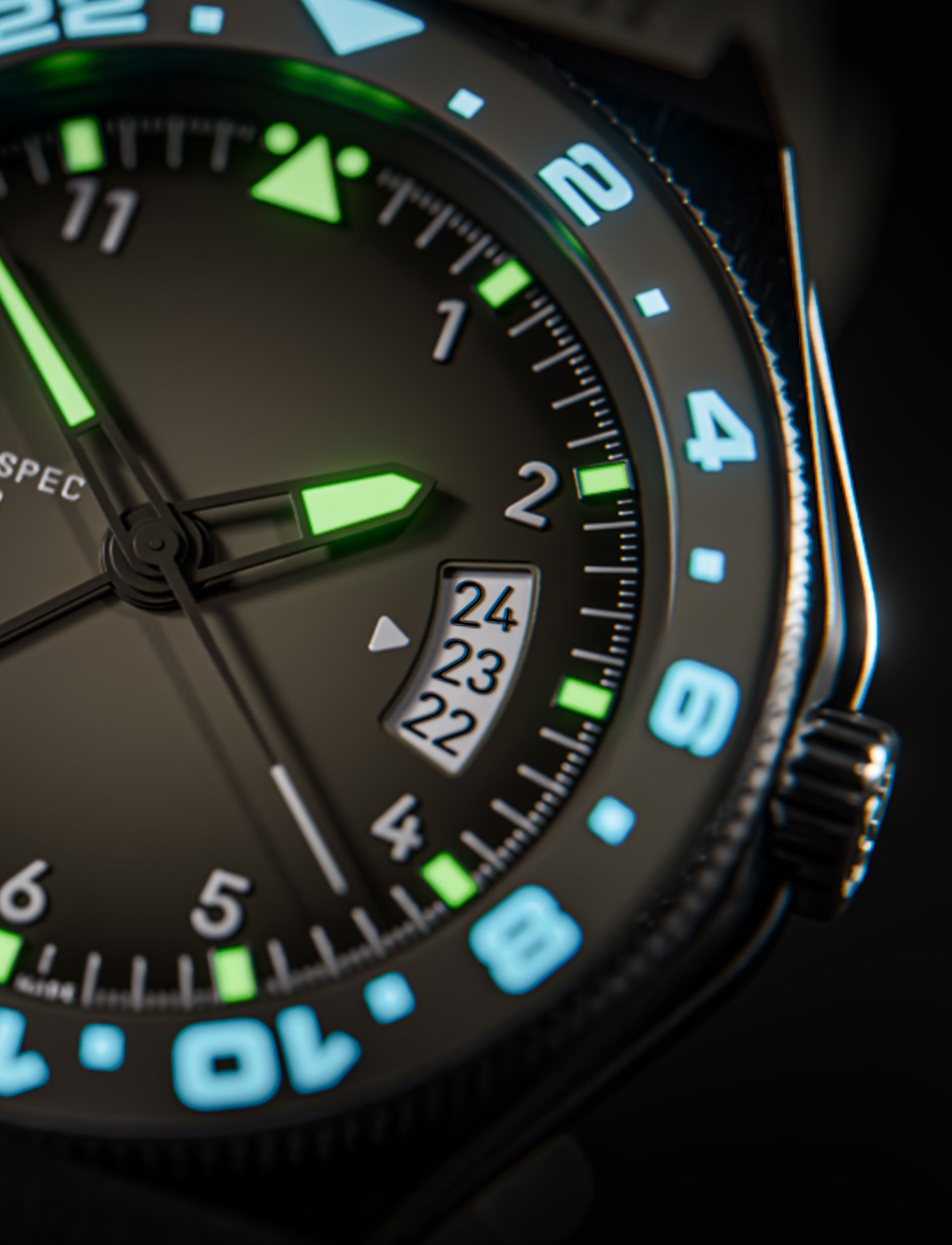 One of MICROMILSPEC’s very first commissions was a pilot’s watch built for the Royal Norwegian Air Force — a timekeeper created for professionals working across and synchronizing multiple time zones. The new Dualtimer returns to those origins, marking the introduction of a dedicated Pilot category with customisable dials for professionals --> sos@micromilspec.com