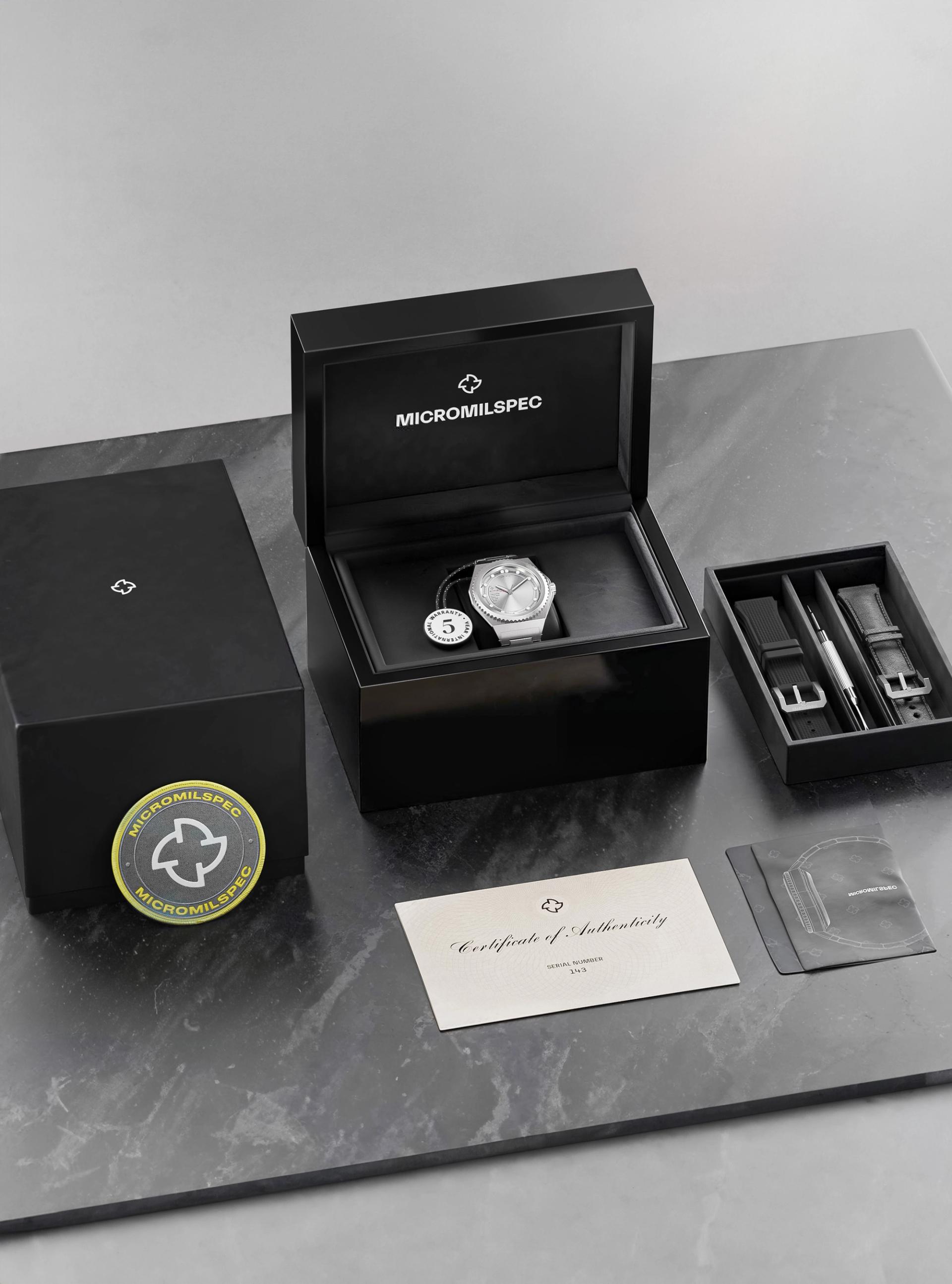 Limited to 25 pieces in this year's Annual Collection: In 2019, MICROMILSPEC launched a test program by distributing 30 timepieces to military personnel within the Norwegian Armed Forces. The goal: to rigorously test the watches in the field and report back on performance and accuracy. These watches were purposefully designed and stripped of all decorations from the bezel, crown, and caseback. A deliberate choice allowing users to easily trace and document their watch’s lifelines.