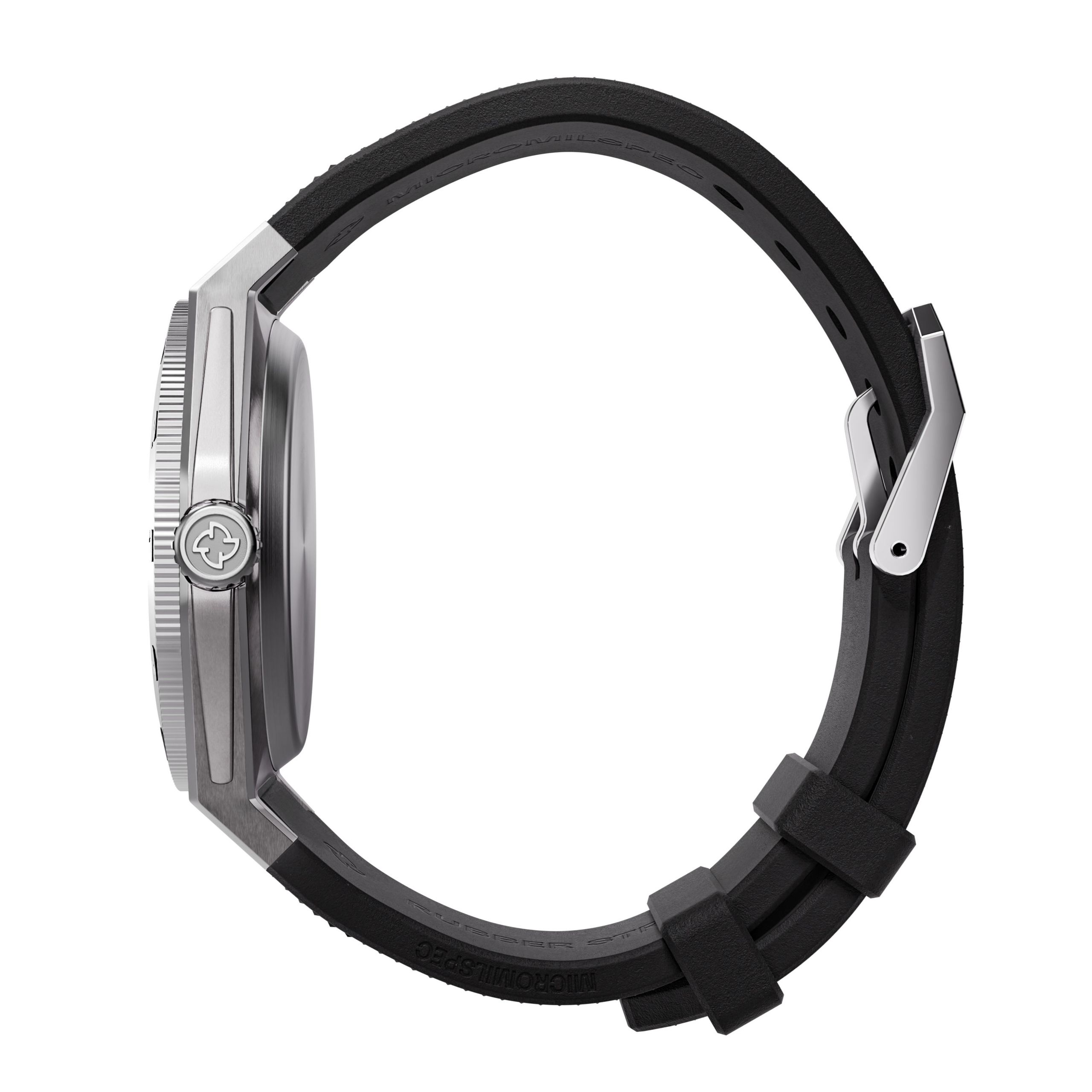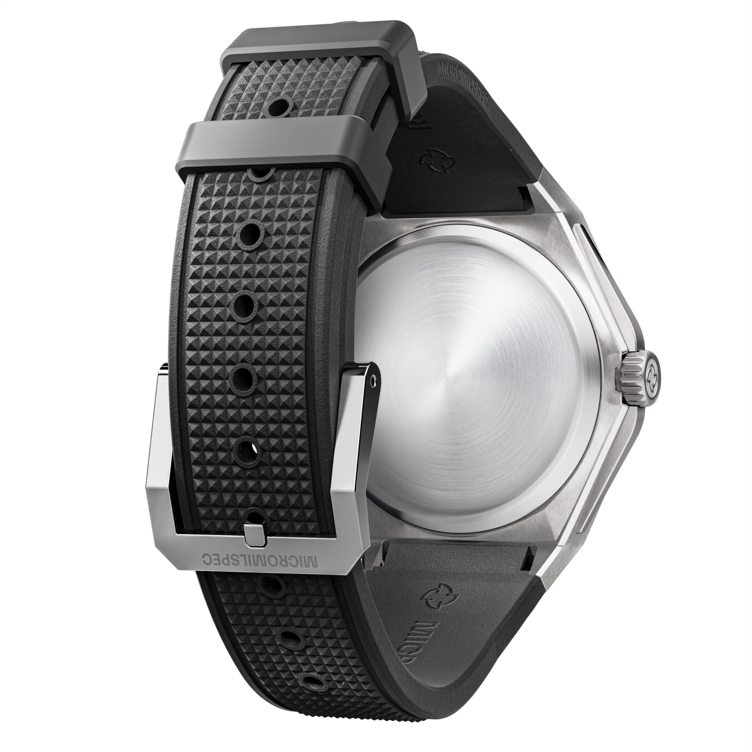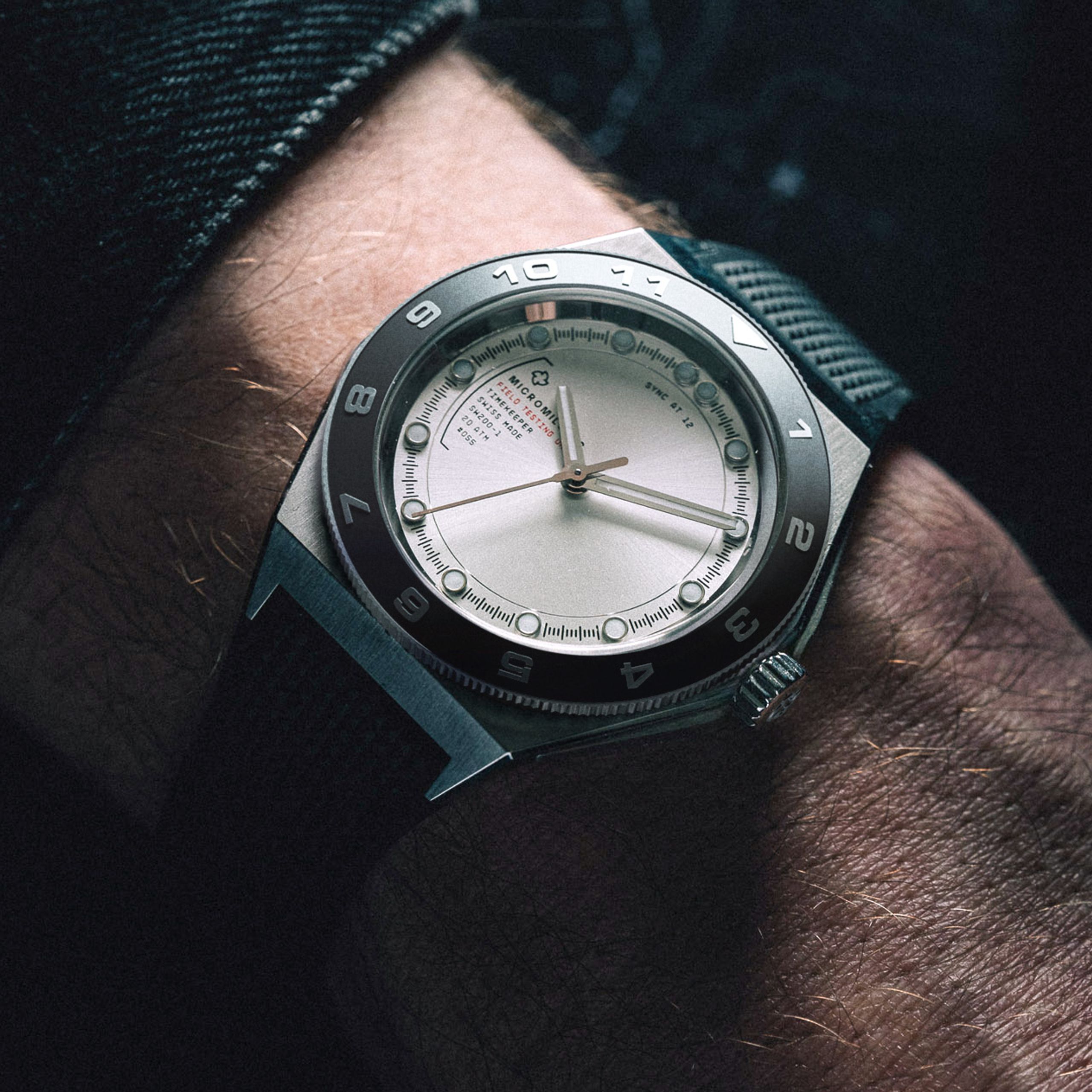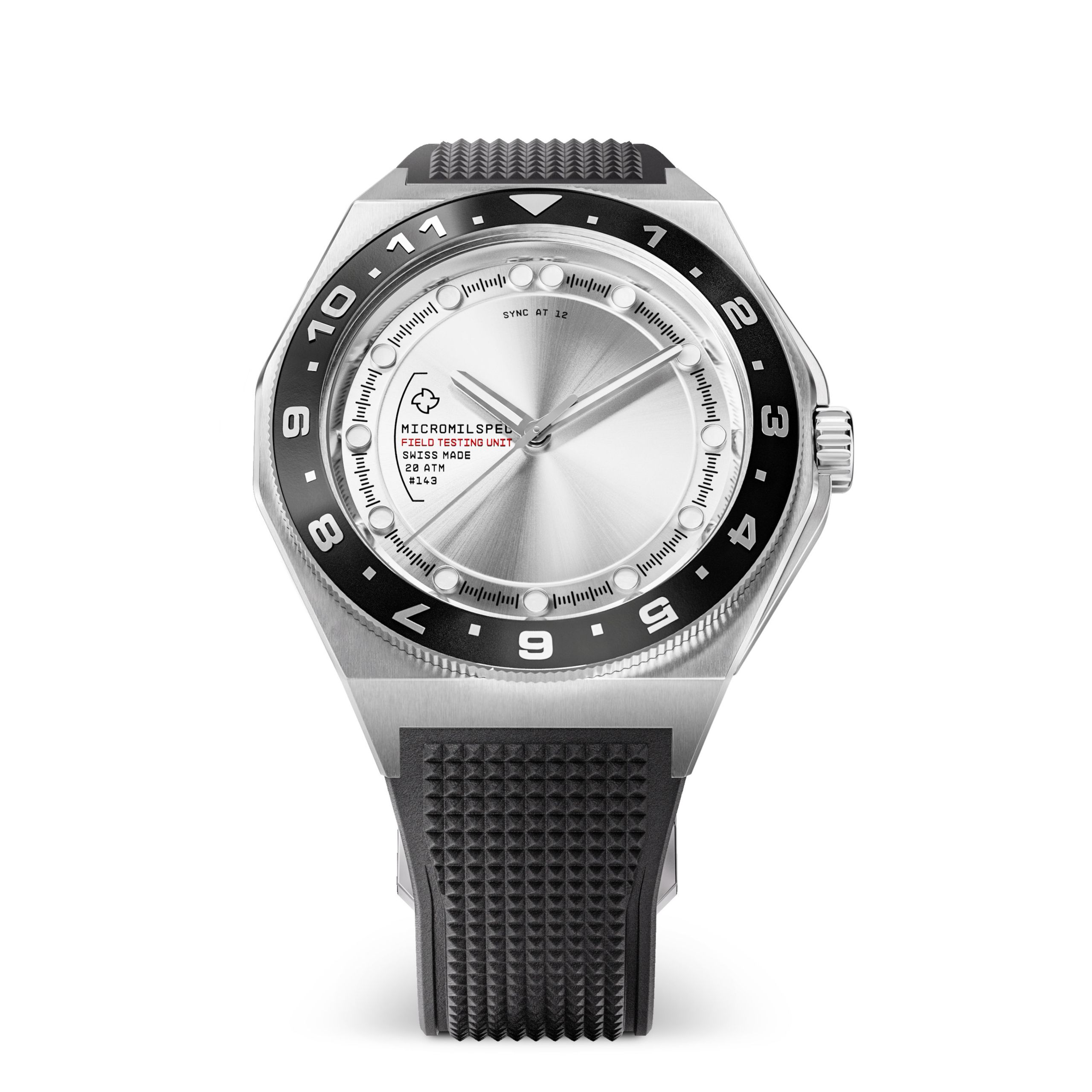 Limited to 25 pieces in this year's Annual Collection: Fitted with MICROMILSPEC’s signature “MicroGMT” bezel, originally developed by the Royal Norwegian Air Force’s Search and Rescue Squadron for missions involving multiple time zones in close proximity. The 12-hour unidirectional bezel displays an additional timezone.