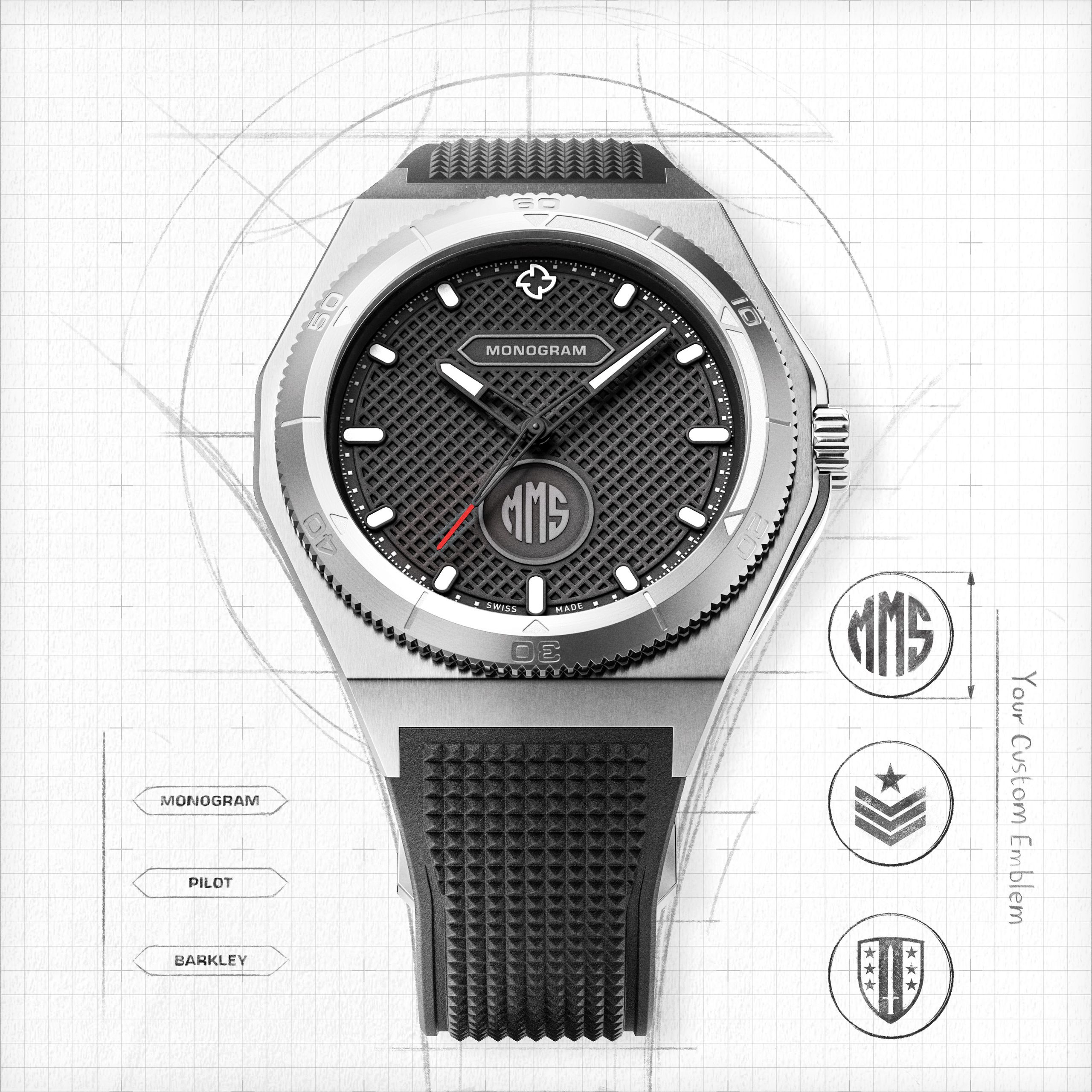 A timepiece uniquely yours. Directly derived from MICROMILSPEC’s homecourt, a playful combination of military history and royal heritage; two worlds closely tied together and known for their use of heraldic symbols and . . . monograms. The Monogram brings this relationship to life in a modern design with tactical features.
