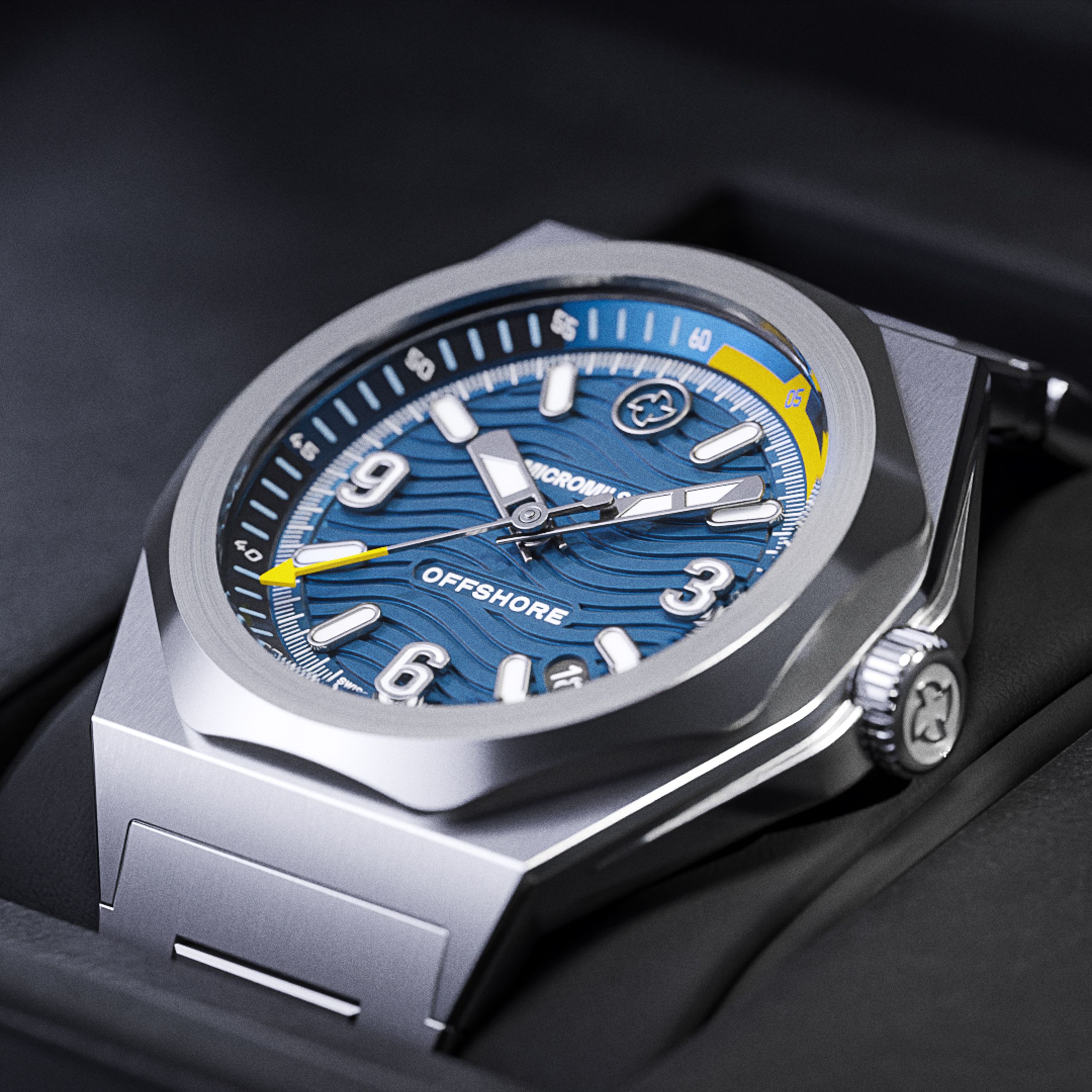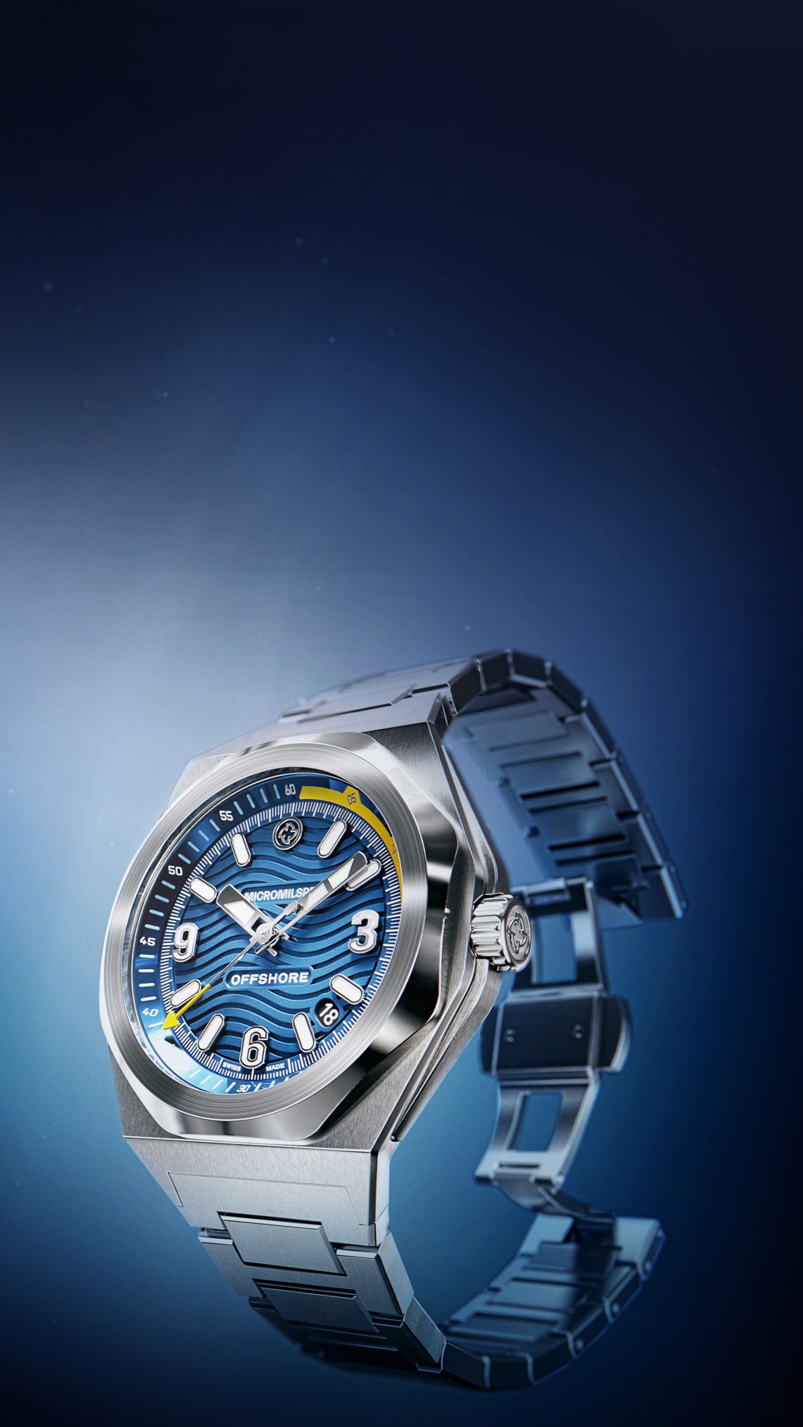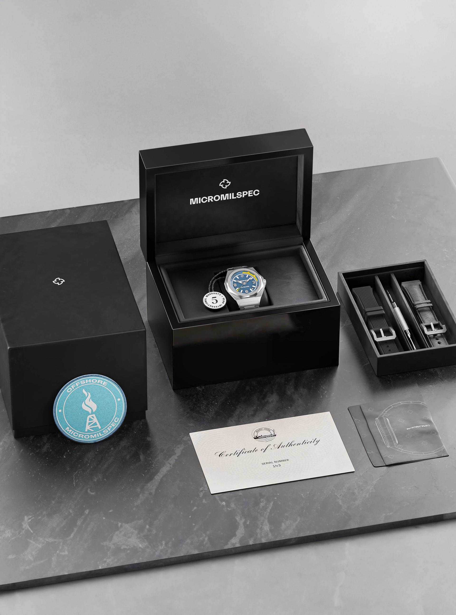 Limited to 200 pieces annually: MICROMILSPEC was tasked by offshore crew members from over twenty platforms, supply vessels, and floating production ships to capture their unique environment. This evolved icon has now joined our Annual Collection for the first time. Offshore crew members are eligible for a custom version.
